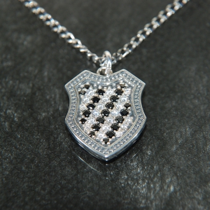 イタリア語でビアンコ(白)とネロ(黒)の言葉通り盾にキュービックジルコニアとブラックキュービックを敷き詰めたペンダントトップです。